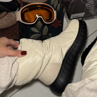 А если у нас намечается новогодний отпуск, да еще и на лыжном курорте, – то к теплому спортивному костюму пастельных тонов можно подобрать дутые боты, которые и согреют, и сделают ваш лук запоминающимся и актуальным.