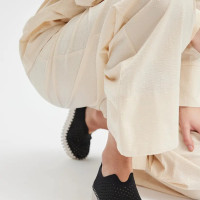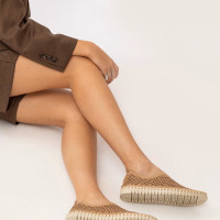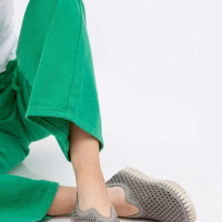 Еще один хит - шлепанцы различных цветов с массажной подошвой в виде переплетений веревки, какими пришвартовывалась рыбацкие лодки в ее родном городе. И вечная модель, популярная во все времена, – слайды с двумя ремешками на декоративных застежках.