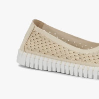 Хитами Илзе стали сникеры, декорированные узорами, сделанными с помощью лазера. Петелька на пятке позволяет легко снимать и надевать обувь, а гибкая и удобная подошва позволяет без устали наслаждаться прогулками по природе. Платформа сникеров представлена в двух вариантах – плоская и более массивная.
