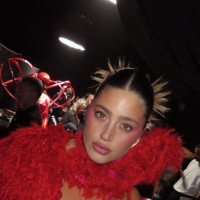 Базой становится Face and Body Studio от M.A.C — фаворит всех подиумных визажистов. Легкий тон, который выглядит как вторая кожа, дополняется консилером Studio Radiance, наносимым лишь там, где действительно нужно. Даже румяна мягко растворяются в покрытии, создавая ощущение, будто цвет исходит изнутри. Это макияж, который не прячет, а раскрывает. Красота, не нуждающаяся в фильтрах — честная, светящаяся, уверенная.
