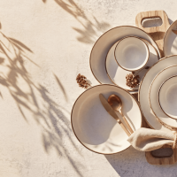 Главный акцент — на сервировке. Здесь есть все, чтобы собрать стол, который выглядит цельно и современно: тарелки, блюда, чашки, пиалы, бокалы и аксессуары. Важно, что все элементы легко сочетаются между собой. Можно пойти по пути спокойной классики — нейтральные оттенки, чистые линии, минимализм. А можно добавить больше характера за счет узоров и цветовых акцентов с легким средиземноморским настроением.